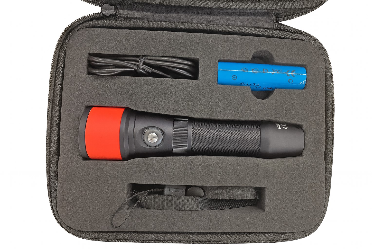 EOS 25LR LASER Taschenlampe (in exclusiver fester Box mit Akku, Ladekabel, Handschlaufe und Ersatz-O-Ring)